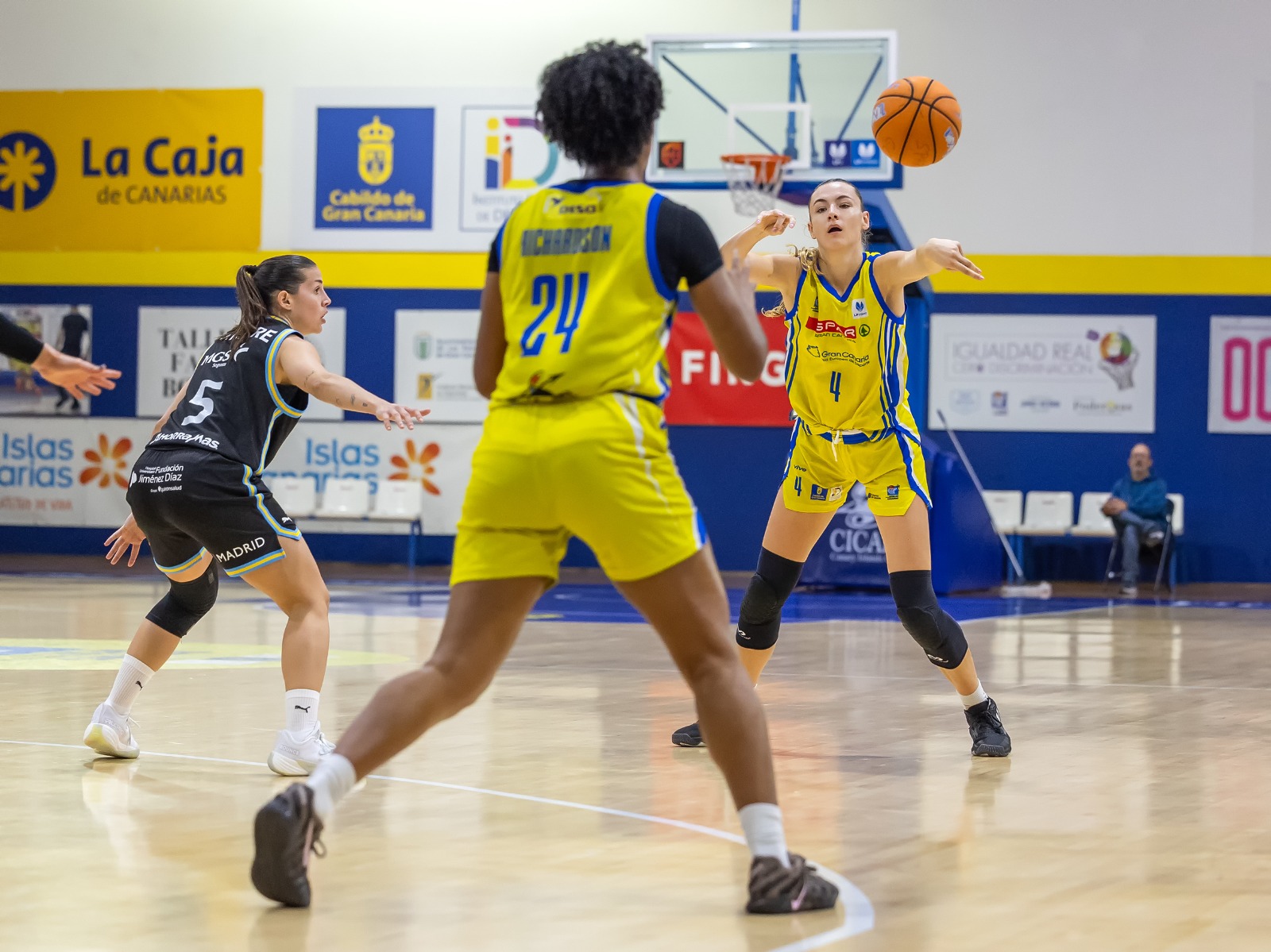 En el segundo cuarto, el conjunto amarillo dio continuidad a su buen momento. Más intenso atrás y con mayor fluidez en ataque, logró ponerse por delante en varios tramos del periodo. El intercambio de canastas fue constante, en un partido de ritmo alto y alternativas continuas. No obstante, en los instantes finales antes del descanso, el equipo madrileño volvió a mostrarse eficaz para marcharse con una mínima ventaja (46-47).
